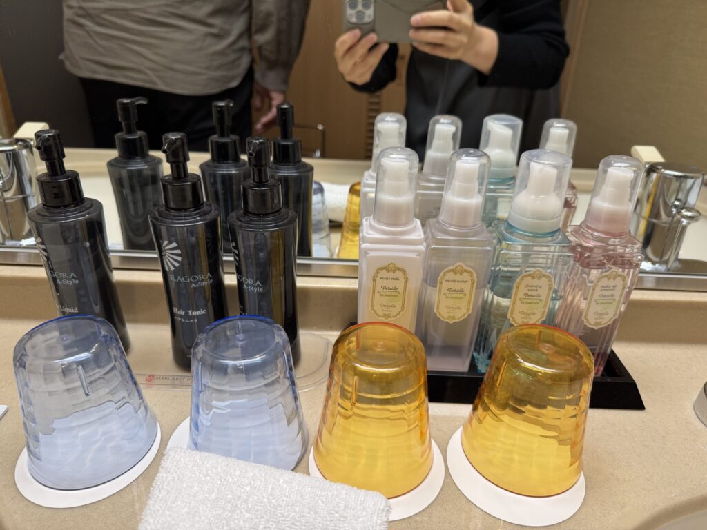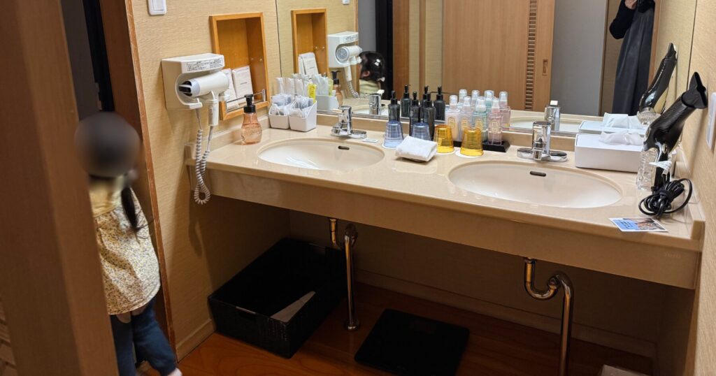 ドライヤーが2種類!アメニティも充実しています。お部屋に子供用の踏み台はなかったので、和室の椅子を移動させて踏み台がわりに使いました。
