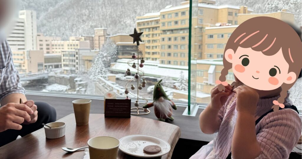 冬の定山渓の景色を見ながらゆっくりティータイムができました。