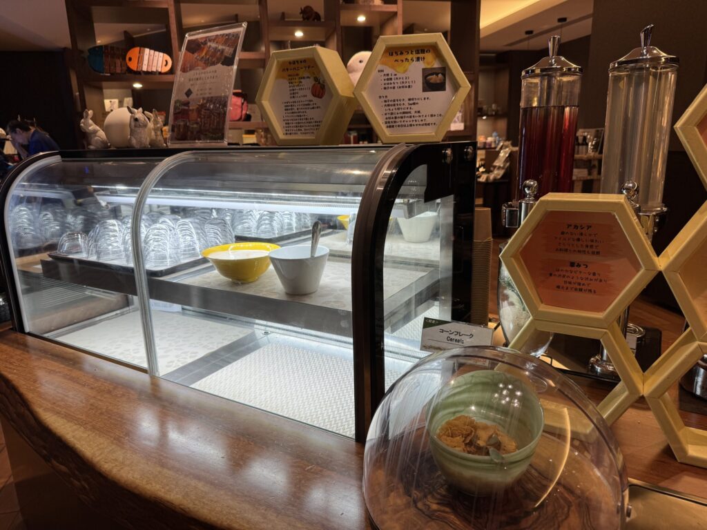 ラウンジサービスは9月より「蜂蜜バイキング」のコーナーがリニューアルされ、より利用しやすいレイアウトになりました 。画像は2024年12月のものなので内容やレイアウトに変更があるかもしれません。
