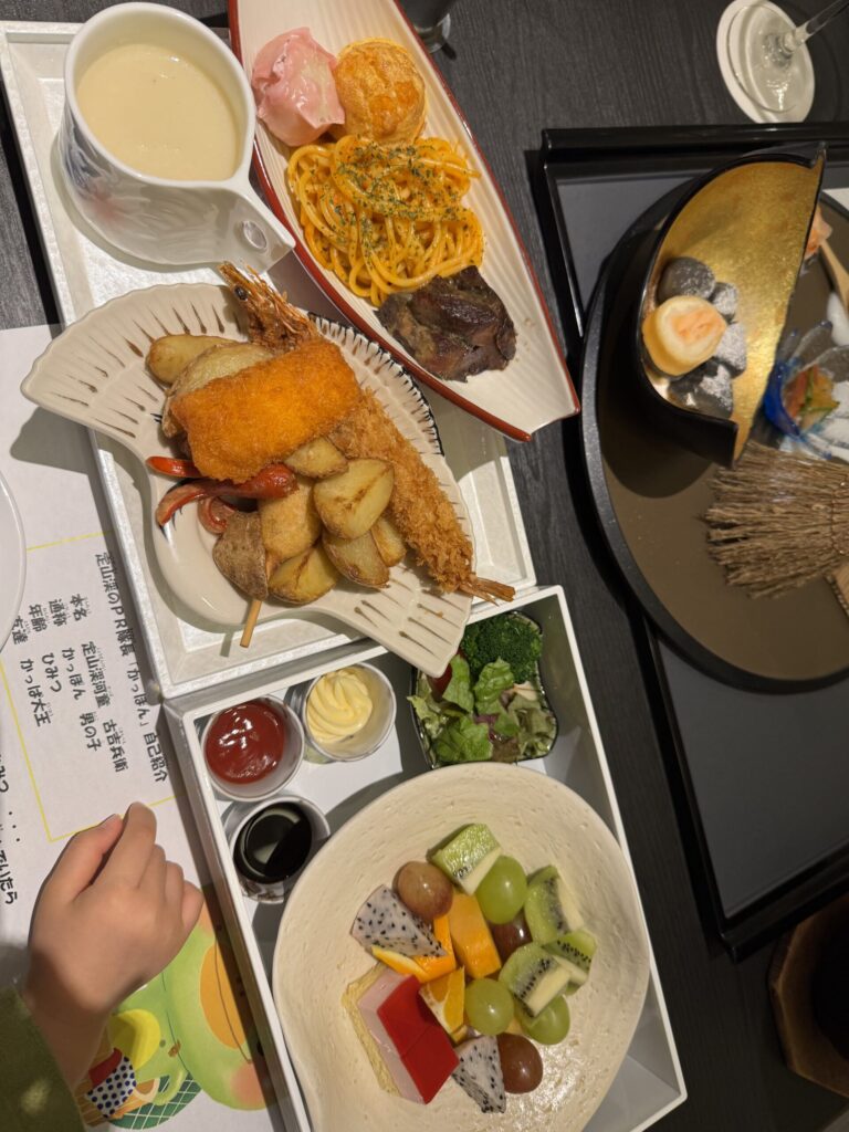 子供のご飯、全体的にボリュームはたっぷりその中から子供が食べられるものを選ぶという感じで食べました。